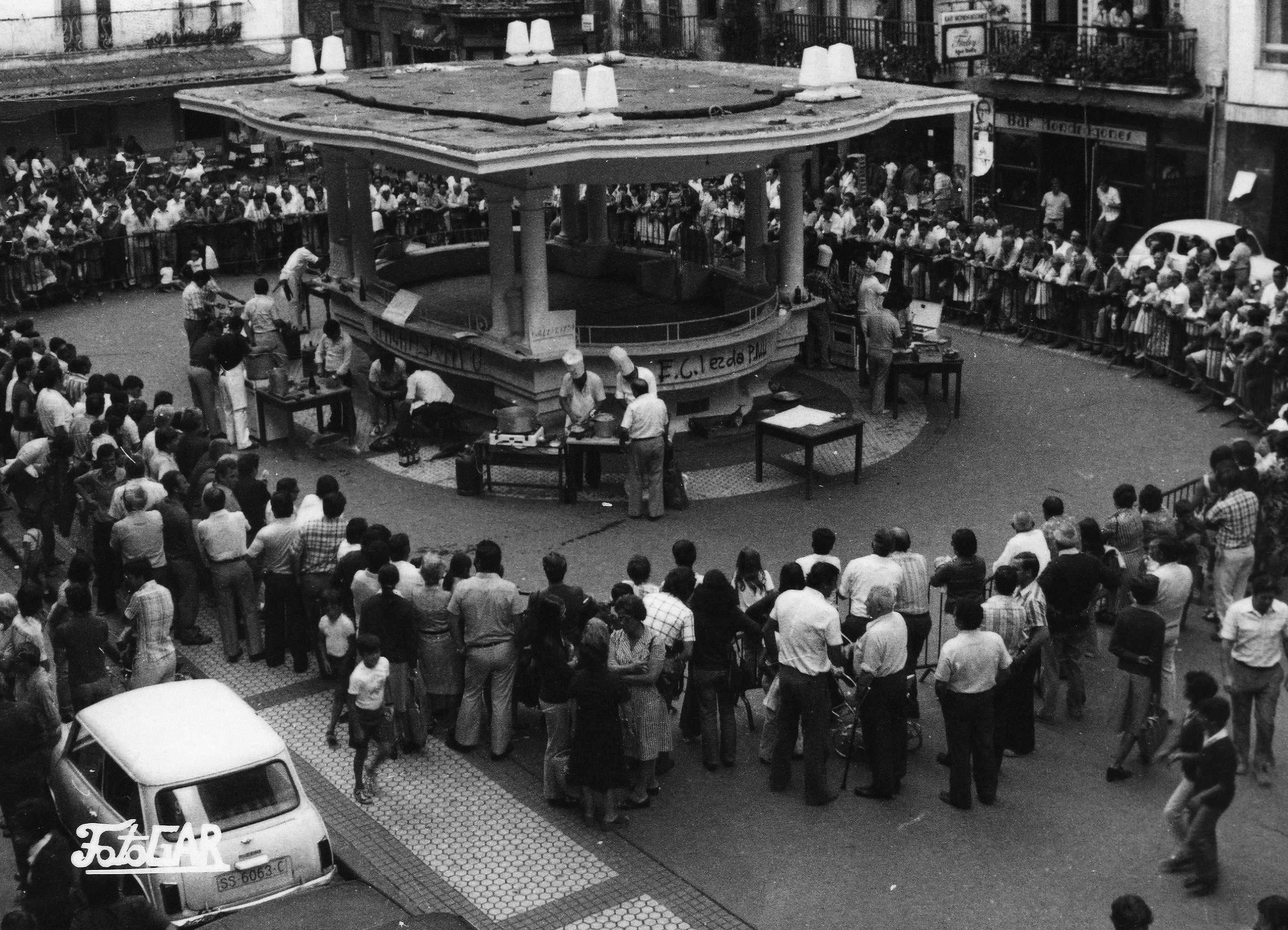 Bitarte horretan, 50eko hamarkadiak 80eko erdialdera arte gutxi gorabehera, hormigozko kiosko batek okupatu zuen Musika Plazako epizentroa. Hil honetako Zaharrak Berri atalaerako aukeratutako argazkia 1977koa da Foto Gar-ek aterakoa, eta bertan, garaiko kioskoaren bueltan marmitako lehiaketa egiten ari direla ikus daiteke, hesiaren bestaldean herritar ugari begira ari dela.