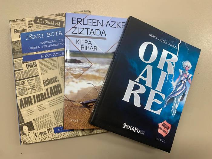 Apirilaren 23a Liburuaren Eguna da, eta egun hori tarteko hainbat liburu bildu ditugu. Ordea, zer liburu da eskualdeko idazleren batena? Erantzun guztiak asmatzen dituztenen artean, Erein argitaletxeak eskainitako Nerea Loiolaren 'Oraire', Kepa Iribarren 'Erleen azken ziztada' eta Pako Aristiren 'Iñaki bota daue' liburuak zozkatuko ditugu.