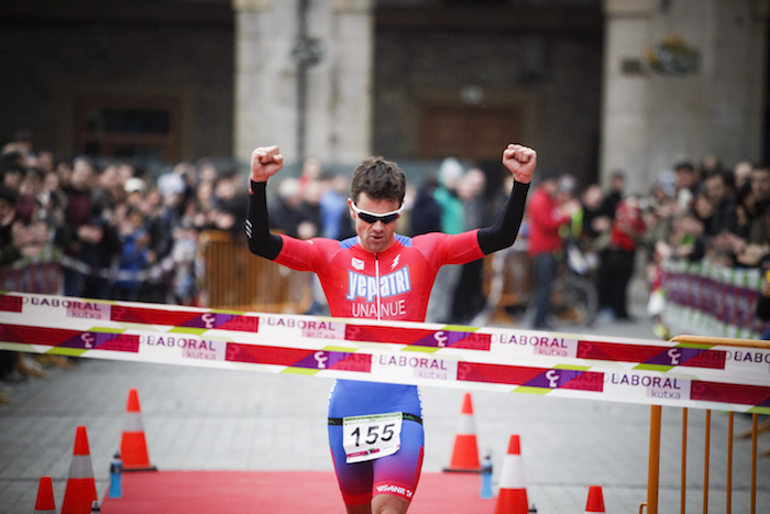 9 kilometro korrika, 36 kilometro bizikletan eta 4,5 kilometro korrika. Lan hori osatu behar izan zuten atzo parte hartzaileek, Oñatin. Gizonezkoetan, Yepa! triatloi taldeko kide Jon Unanue zarauztarra izan zen garaile, 1:46:15eko denborarekin; bigarren sailkatu Adrien Latestereri 24 segundoko aldea atera zion, eta hirugarren sailkatu Beñat Arnaizi, berriz, 32 segundo. Euskal zirkuituko bosgarren proba izateaz gain, Euskadiko Duatloi Motz Txapelketa jokatzeko baliatu zuten. Ondorioz, proba bereganatzearekin batera, Euskadiko txapela ere jantzi du.