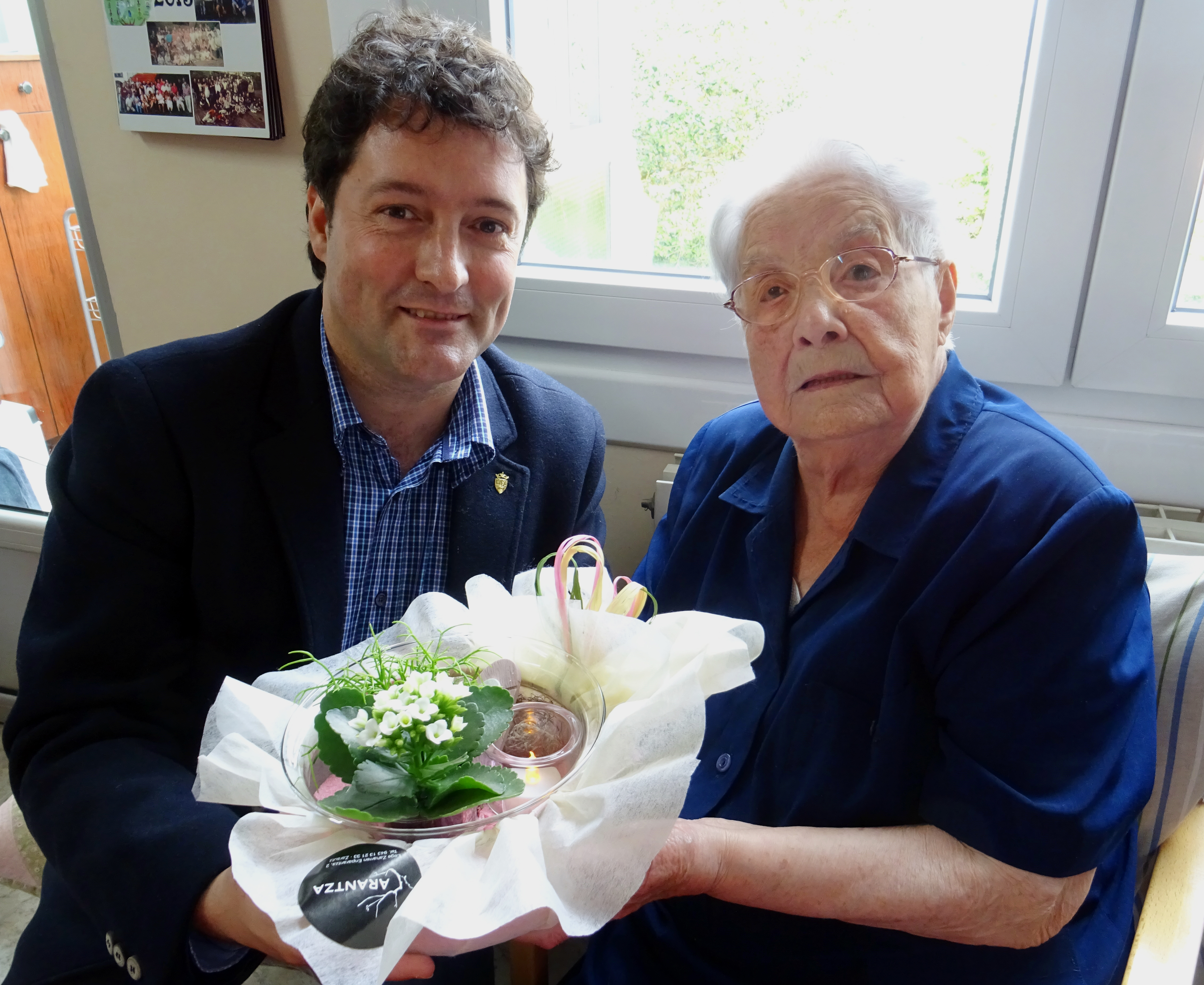 Garbiñe Carreño herriko emakumerik zaharrena da, eta gaur 106 urte bete ditu. Hori dela eta, Xabier Txurruka alkateak bisita egin dio, eta zoriontzeaz gain, loreak oparitu dizkio. Solasean aritzeko aukera izan dute, gainera. Carreño Bilbon jaio zen arren, urte asko daramatza Zarautzen bizitzen.