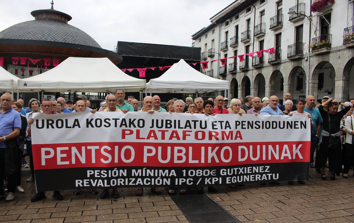 Eskualdeko pentsiodunek elkarretaratzea egin dute Azpeitiko plazan, Urola Kostako Plataformak deituta. San Inazio bigarrena dute gaur, eta urtero bezala, Gipuzkoako Foru Aldundiko eta Eusko Jaurlaritzako ordezkarien bisita izan dute herrian. Pentsiodunen asmoa zen Iñigo Urkullu lehendakariari gutun bat ematea, baina hura etorri ez denez, Eusko Legebiltzarreko presidente Bakartxo Tejeriari eman diote. Bertan, pentsio publiko duinak eta KPIaren araberako igoerak eskatu dituzte, 1.080 euroko gutxieneko hileko pentsioarekin batera.