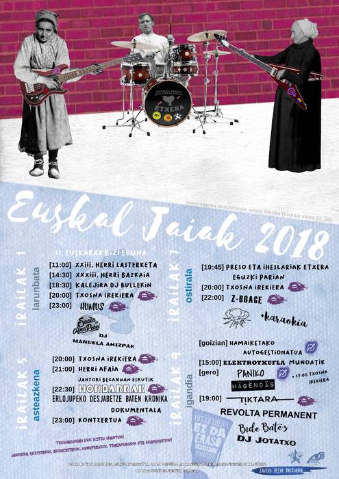 - 19:00. Kontzertuak txosnagunean: Tiktara, Revolta Permanent, Bide Batez eta DJ Jotatxo.