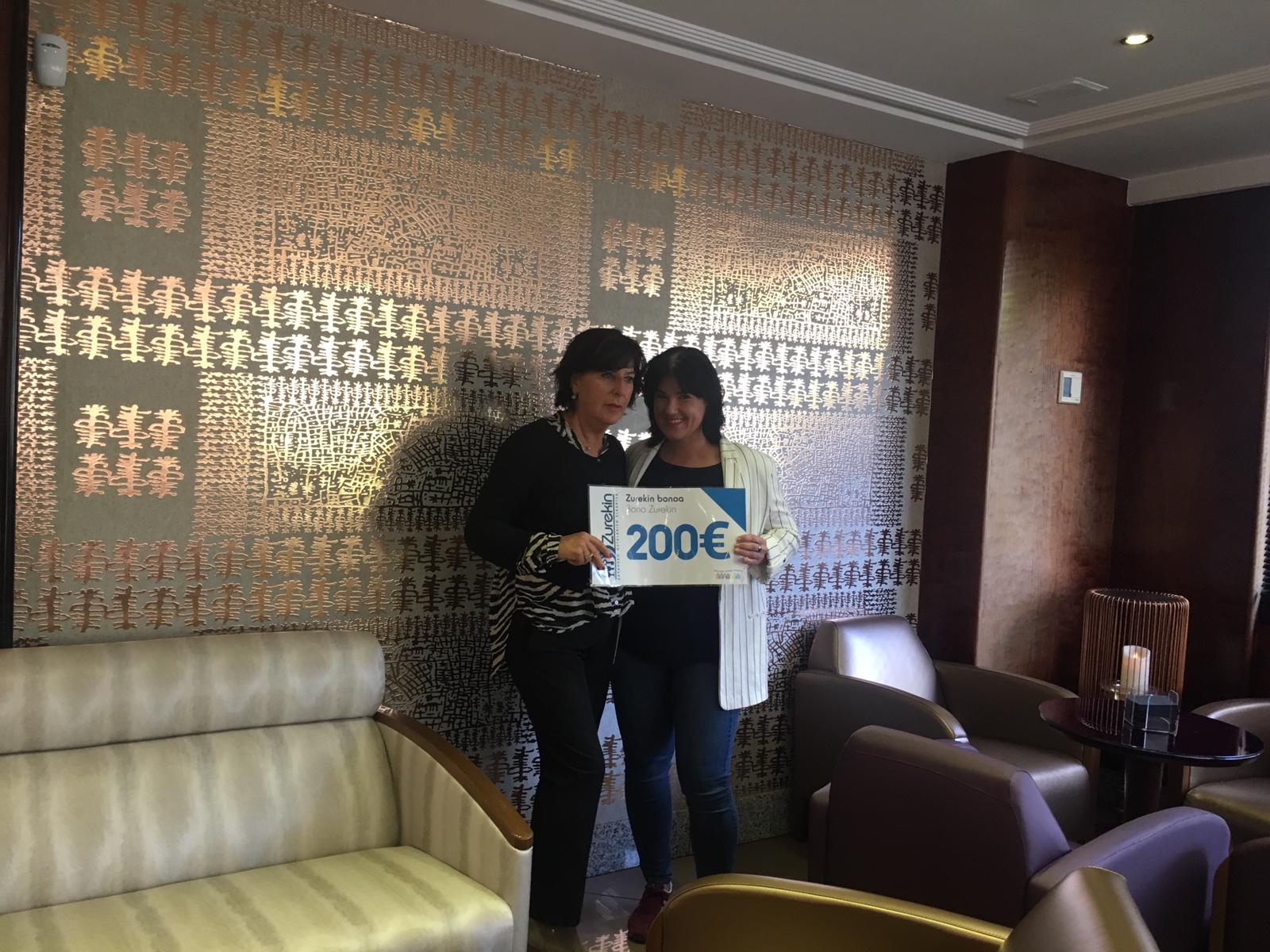 Euromar kafetegian bete zuen txartela Urbitartek, eta hango ordezkari Mari Luz Osaren eskutik jaso du 200 euroko saria. Orain, hiru hilabeteko epea izango du diru hori Zurekin ostalari elkartearen jatetxe edo ostaturen batean gastatzeko.