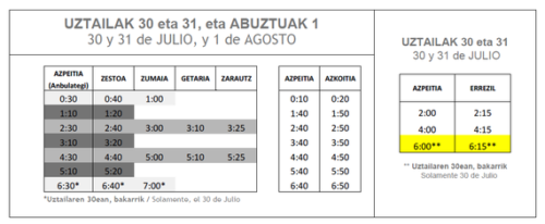 San Inazio jaietan gaueko autobus zerbitzu bereziak eskainiko ditu Lurraldebusek. Azpeitia eta Zarautz artean, Azpeitia eta Azkoitia artean nahiz Azpeitia eta Errezil artean hainbat joan-etorri egingo dituzte autobusek uztailaren 30ean, 31n eta abuztuaren 1ean.
