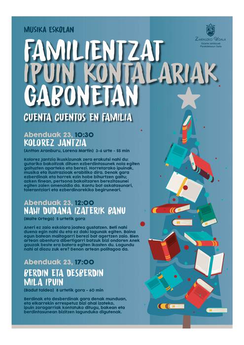 Goizeko 10:30ean izango da lehen saioa, Antton Aranburuk eta Lorena Martinek eskainiko duten Kolorez jantzia ipuin kontaketa, hain zuzen ere. 3 eta 6 urte bitarteko haurrei zuzendutako saioa da hau.
