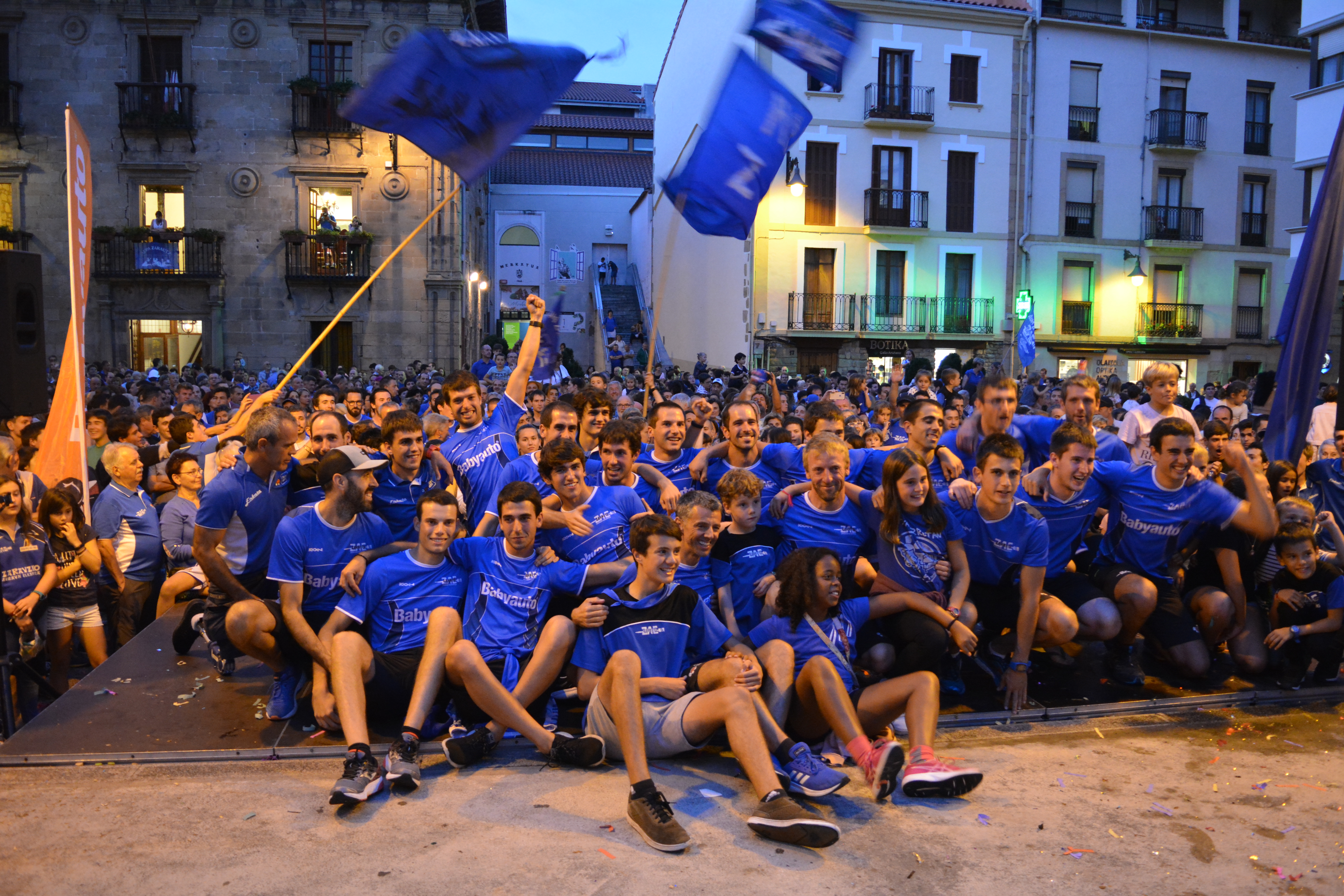 Bertan da Jon Artola presidentea ere, eta hark hartu du hitza arraunlariak biribil handi bat osatu bezain pronto. "Egun on!" hasi da. "Dakizuen bezala, atzo [larunbata] egin genuen TKEko [Traineruen Kluben Elkartea] batzarra Oiartzunen, eta ofizialki atzotik gara Eusko Label ligako kluba".