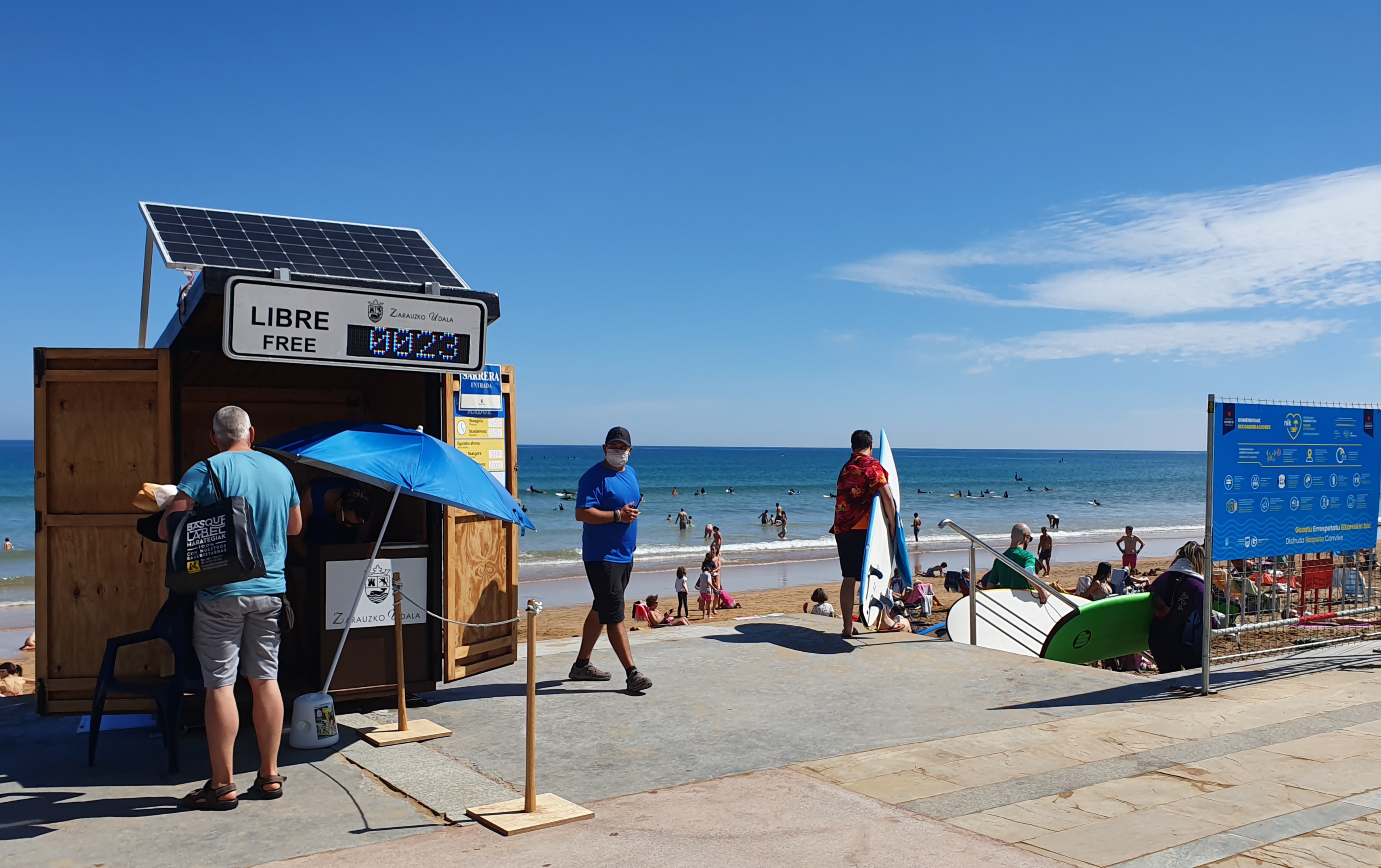- Edukieraren momentuko informazioa kontsultatu ahalko da hondartzan bertan –etxolen gainean jarri dituzten karteletan–, udalaren zarautz.eus webgunean eta herriko sarreretan –autobideko sarreran eta Narros jauregiaren aurrean, N-634 errepidean–.