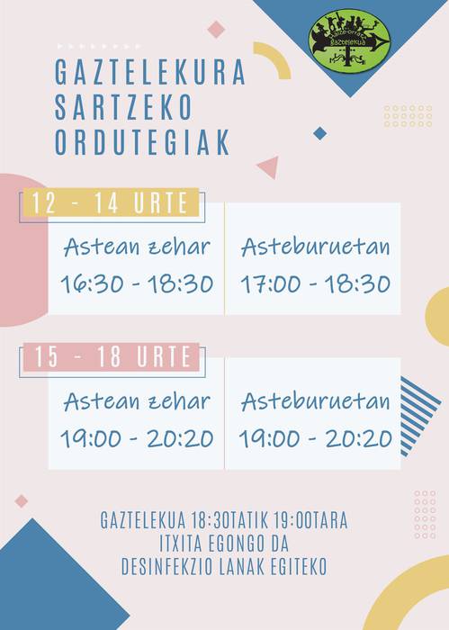 Gazteria Sailak gogorarazi du 12 urtetik 18 urtera arteko gazteei zuzendutako gunea dela gaztelekua, eta ikasturte honetan bertaratzeko asmoa dutenek, gurasoek edo tutoreek sinatutako baimena beharko dutela. Hain zuzen, pandemiari lotutako neurrien ingurukoa da baimena.
