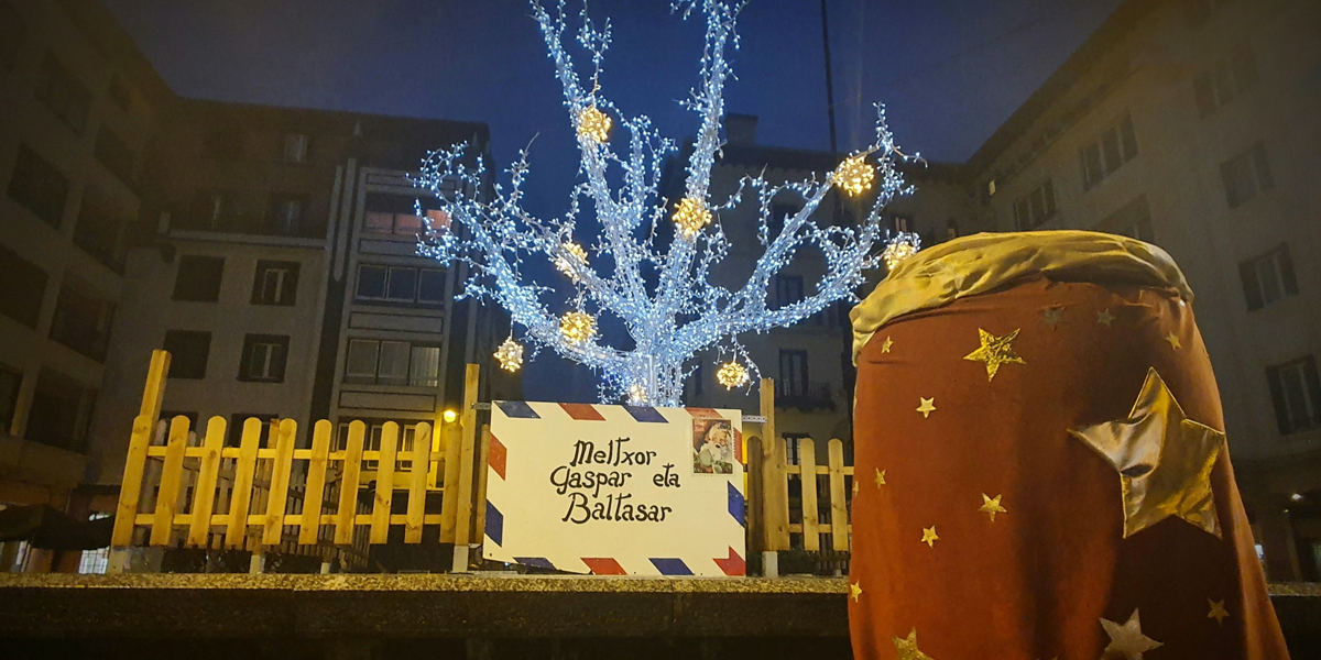 Zarauzko Udalaren argazkian ikus daitekeen bezala, Bizar Zuriren postontzia herriko umeen eskutitzak jasotzeko pronto dago Lege Zaharren Enparantzan. Pandemiagatik ezingo du Bizar Zurik berak etorri, baina gutunak iritsiko zaizkie Meltxor, Gaspar eta Baltasar Errege Magoei.