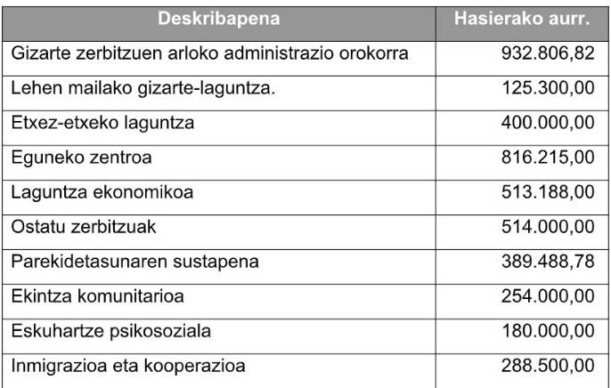 Taula honetan dago desglosaturik Gizarte Politiketako aurrekontua: