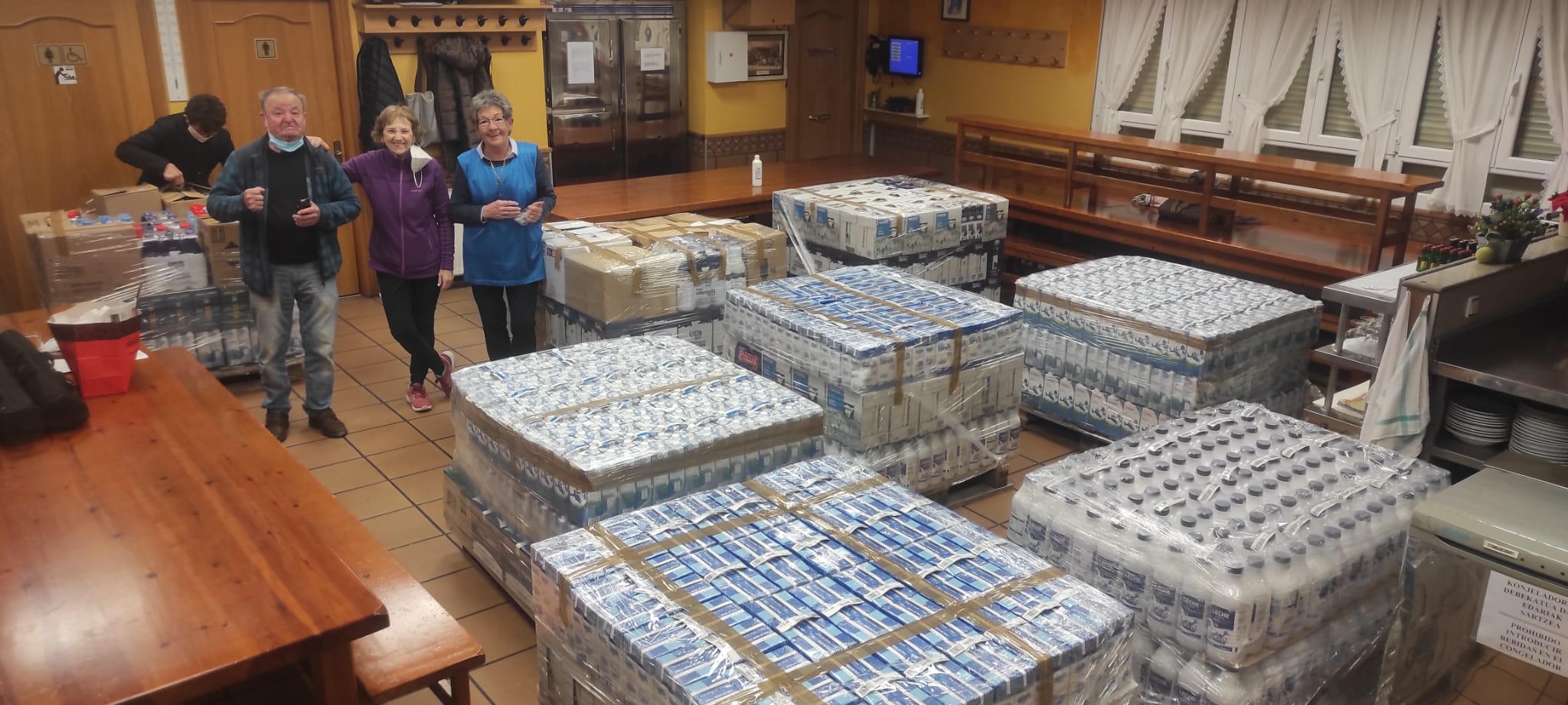 Gurutze Gorrikoek egin zituzten garraiolari lanak, eta Iñurritzako Jubilatuen Elkartean pilatzen joan ziren egunean zehar gainontzeko lau guneetan jasotako esnea. Han, paleetan txukun bildu zuten dena boluntarioek, eta laster jasoko dute bertatik bildutako esne guztia Zaporeakekoek. Miren Uria zarauztarra bertan aritu zen laguntzen atzo, eta azaldu du beste behin ere ondo erantzun diola deialdiari jendeak. Deigarria eta polita egiten zaio Uriari guraso gazte ugari bertaratu zela elkartera ume txikiekin, azaltzeko umeei zergatik ari diren egiten bilketa. "Atzo ere sartu ziren ikastola kanpoaldean jolasten zeuden umeak galdetzera, interesatzen zitzaien gaia".