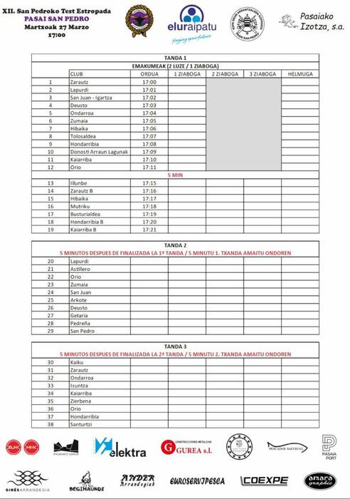 Azpialdeko irudian, antolatzaileek argitara emandako irteera ordena. Zarautz Gesalaga Okelanek hiru ordezkari izango ditu.
