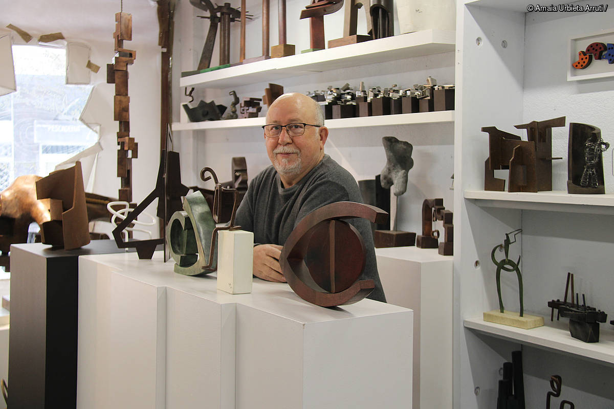 Txikitatik ibili izan naiz harriekin, egurrarekin edo bestelako materialekin jolasean. Esku artean neukan horrekin beti egiten nuen zerbait. Donostiako lantokia itxi zutenean, hona [Zarautzera] etorri nintzen bizitzera, eta langabezian egon nintzen denbora labur batez. Orduan hasi nintzen eskultura pixka bat handiagoak egiten. Zapata denda zabaldu nuen gero, eta asteburuetako eskultorea izan naiz harrezkero. Larunbatetan eta igandetan egiten nuen lan eskulturekin. Aste osoa pasatu ohi nuen lanean, asteburuan zer eta nola egingo nuen pentsatzen.