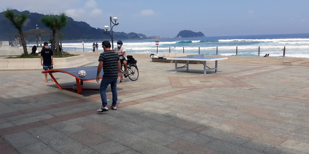 Uda denboraldiari begira, lehendik malekoian zeuden ping pong-eko mahai zaharrak kendu eta berriak jarri ditu Zarauzko Udalak.