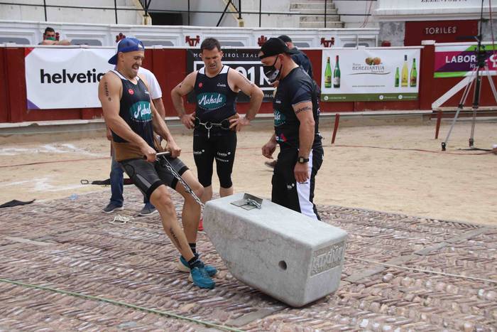 Finalean, finalerdian izan zituzten lanak bikoiztu egin beharko dituzte, ordea, parte hartzaileek. Lanari ekiteko, 100 kiloko bolari 40 altxaldi eman beharko dizkio bikote bakoitzak; gutxienez hamasei jasoaldi eman beharko dizkio harriari bikoteko kide batek. Bola altxatu ondoren, berriz, giza proban 400 kiloko harriari lau plaza bana eman beharko dizkiote; bikotekide bakoitzak bina plaza osatu beharko ditu.