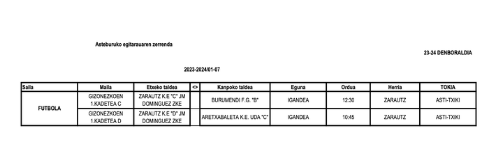 Zarautz Kirol Elkartearen taldeek etxean jokatuko dituzten partidak ikus daitezke hemen. Asteburu honetan, soilik futbol taldeek izango dituzte partidak etxean.