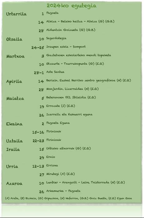 Antolatzaileek adierazi dutenez, ibilaldiak ez du inolako zailtasunik, "bideak agerikoak eta nahiko egokiak" baitira. 10 kilometroko ibilbidea izango da igandekoa, eta 520 metro inguruko desnibel positiboa du. Alkizara joateko, 7:30ean irtengo dira Agueseko biribilgunetik. Hona hemen urte osoko ibilaldien egutegia: