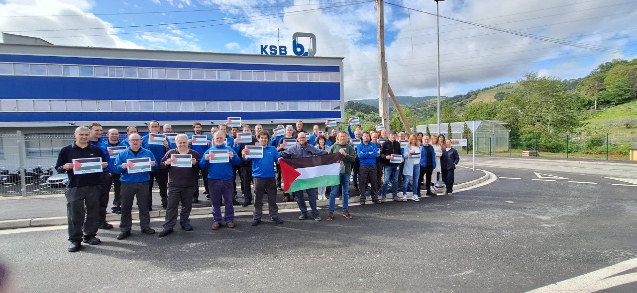 SOS Rafah. Stop genozidioa lelopean Palestinako genozidioa gelditzeko eskatu dute gaur goizean eskualdeko zenbait langilek. Hain justu, ELA, LAB, CCOO, UGT, ESK, CGT, Steilas, Solidari, EHNE, Etxalde eta Hiru sindikatuak izan dira gaurko mobilizazioak deitu dituztenak, eta, besteak beste, Zarauzko KSB Itur enpresako langileek egin dute bat deialdiarekin.