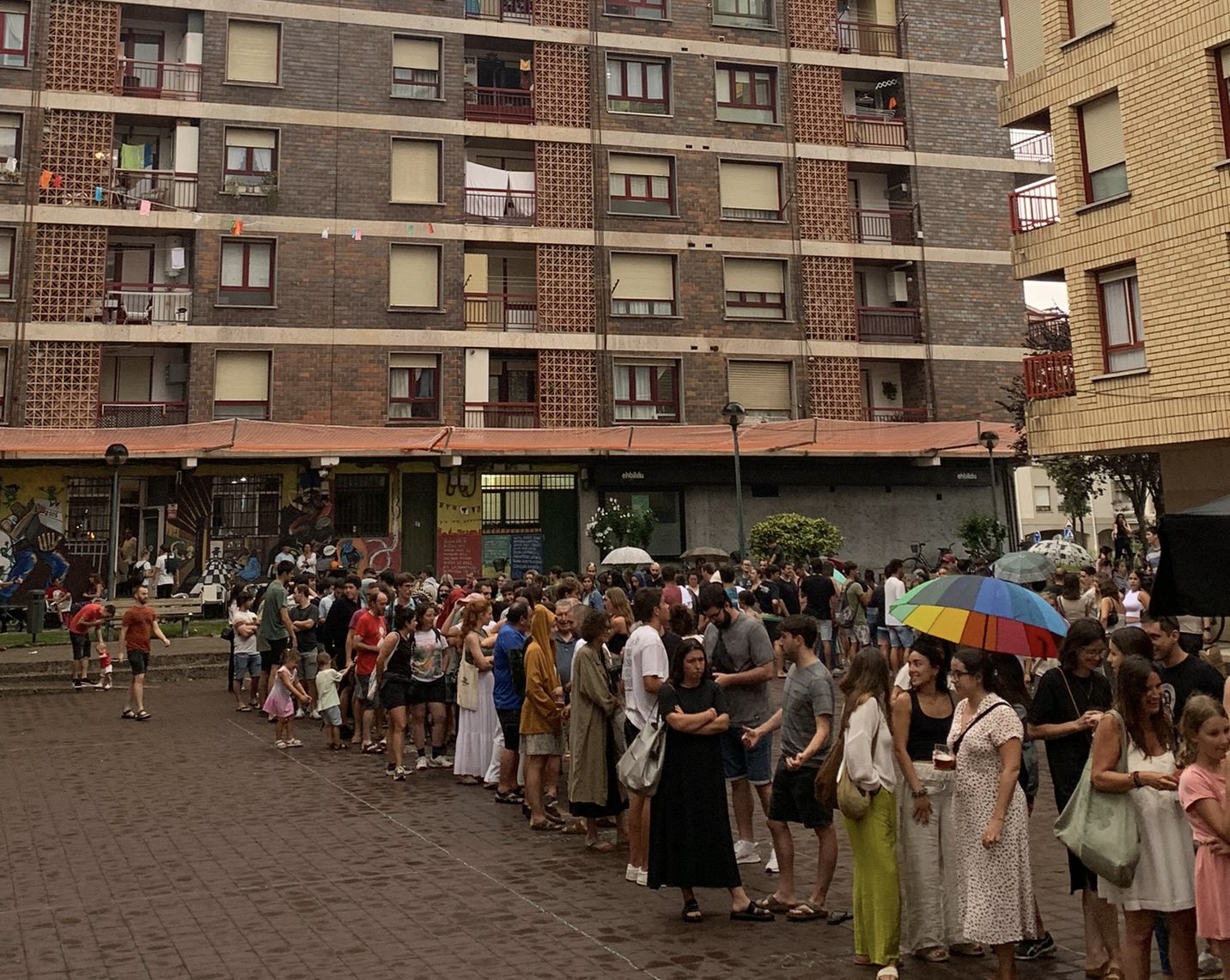 Aste honetan hasiko dira SKAPAko jaiak eta astebururako ekintza ugari antolatu dituzte Santa Klara, Azken Portu eta Aritzbataldeko jai batzordekoek. Horien artean, urtero egiten den auzo bazkariko txartelak saltzen hasi ziren atzo arratsaldeko 20:00etan Plaza Gorrian. Egunean bertan sarrera guztiak agortu ziren, 550 pertsona inguruk erosi ondoren. Nahiz eta euripean itxaron, atzoko salmentak izugarrizko arrakasta izan zuen.