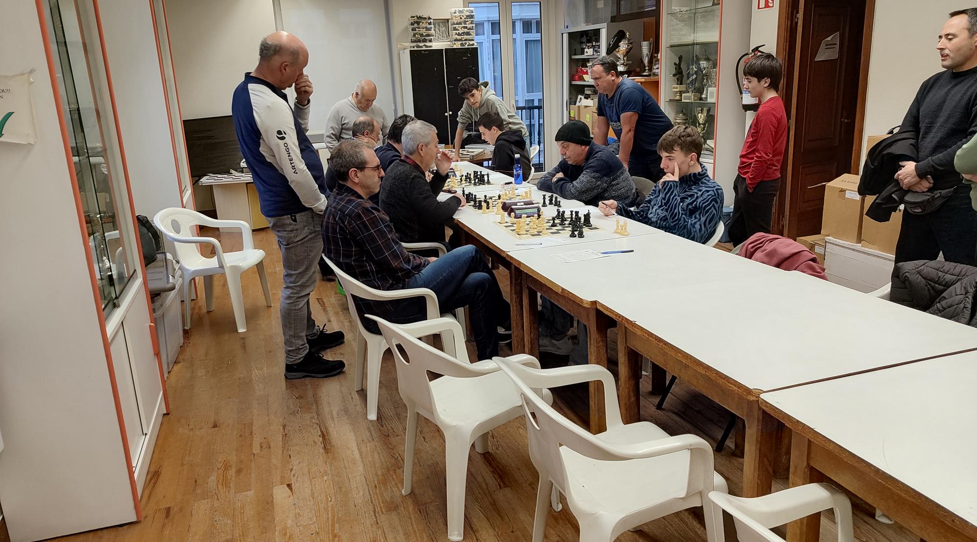 Txaturanga taldearen aurka jokatu zuten denboraldiko lehen jardunaldia, eta 2-2ko emaitzarekin itzuli ziren etxera. Lehen mahaian Iñaki Altzibar aritu zen. Partida zaila izan zuen hasieratik, eta hiru orduren ondoren, amore eman behar izan zuen. Bigarren mahaian Iñaki Buruntzak jokatu zuen. Bi peoi gutxiagorekin iritsi zen amaierara, baina azkenean lortu zuen partida berdinketa batean amaitzea. Hirugarrenean Jon Altzibarrek jokatu zuen. Partida hasieran akats bat edo beste egin bazuen ere, berdintzea lortu zuen. Azken mahaian Aitor Altzibarrek jokatu zuen, eta hasiera arraroa izan arren, oso ongi moldatu zen erdi-jokoan, eta neurketa irabazi zuen.
