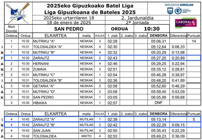 Gipuzkoako batel ligako bigarren jardunaldia jokatu zuten larunbatean Pasai San Pedron (Gipuzkoa). Bertan lehiatu ziren ZAEko ontziak; sailkapenaren goialdean amaitu zuten batzuek, eta postu apalagoekin konformatu behar izan zuten besteek.