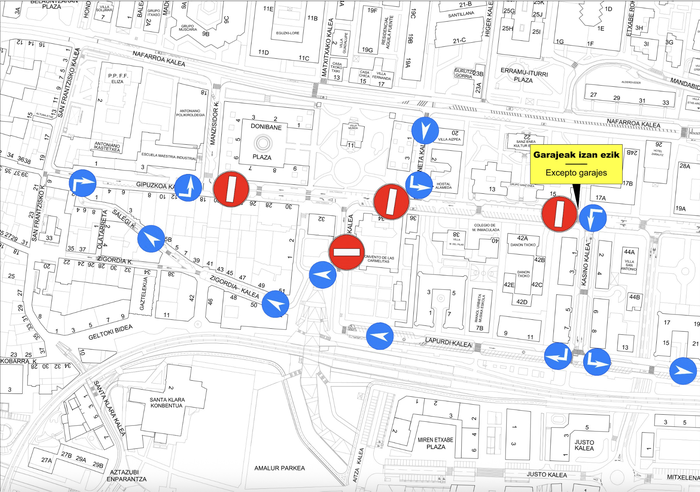 Ondorioz, trafikoa beste kale batzuetatik bideratuko dute hiru egun horietan, eta hartuko den neurri garrantzitsuena Lapurdi kalearen noranzko aldaketa izango da, Kasino kaletik Gaztainperaino. Aldaketa horrek ibilgailuak Zigordia eta Salegi kaleetara iritsi ahal izatea baliatuko du.