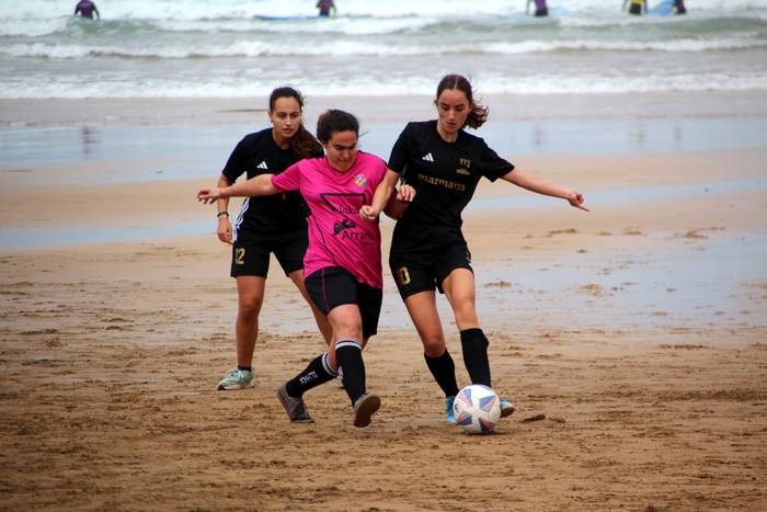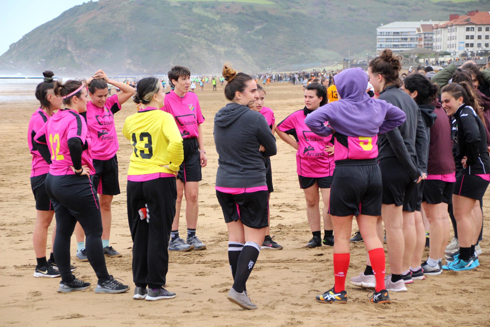 Hondartza, beraz, futbol zelai bat baino gehiago bihurtu da aurtengo denboraldian: topaleku bat da, non identitate ezberdinek espazio bera partekatzen duten, errespetuz eta naturaltasunez. Eta horrek badu indarra. Izan ere, Lakari-Arrano taldearen presentziak ez ditu soilik kolorea eta berritasuna ekarri hondartzara; ikusgarritasunaren eta inklusioaren aldeko urrats garrantzitsua izan da herrian. Kirolaren bidez, eta era berean jolasaren bidez, bizikidetza era naturalean eraikitzea posible dela erakutsi du Zarauzko hondartzan.