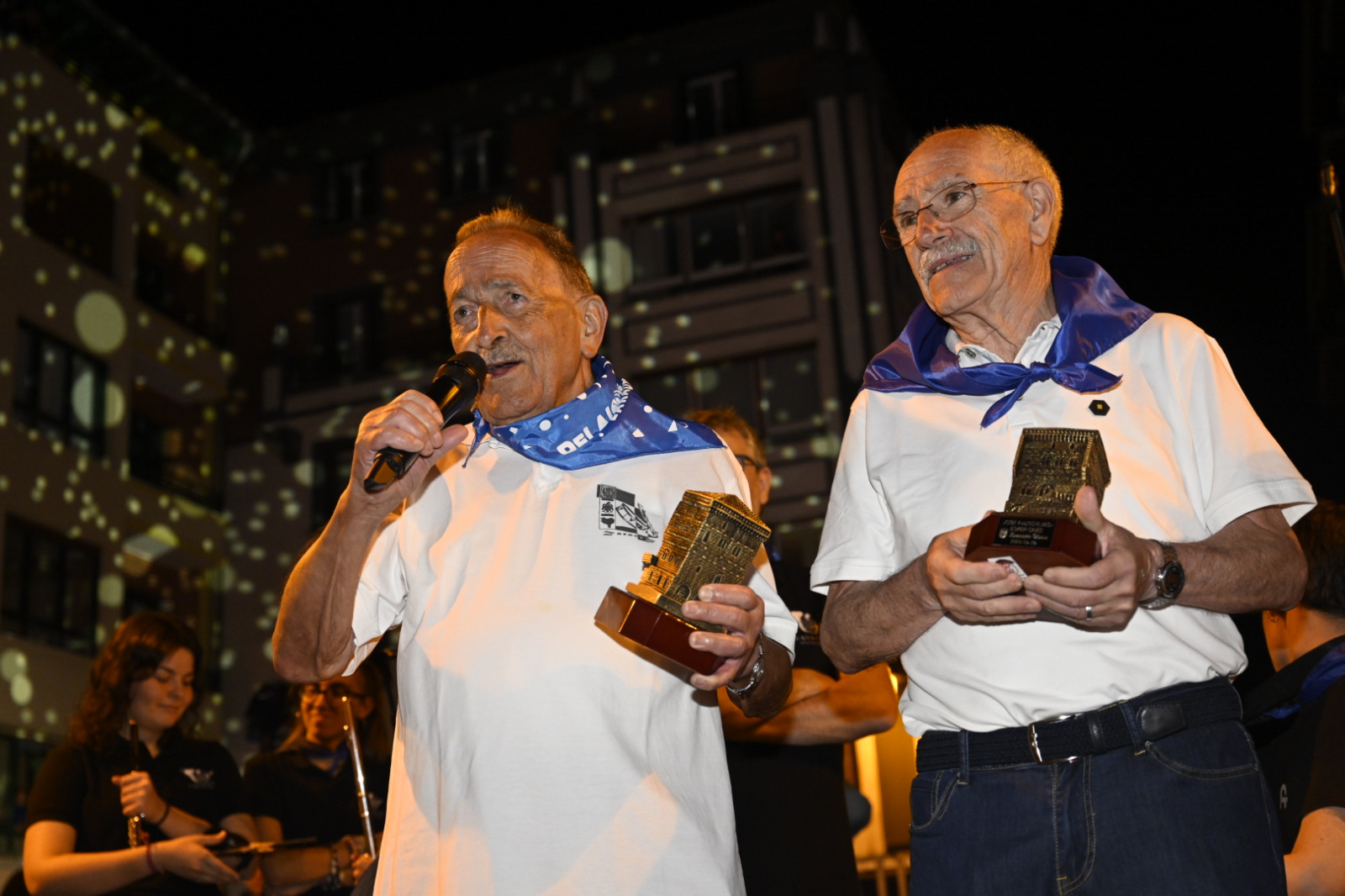 Joxe Miel GastaƱares 'Legazpi' eta Jose Inazio Elias, sanpelaioetako aitortzan. (Arnaitz)