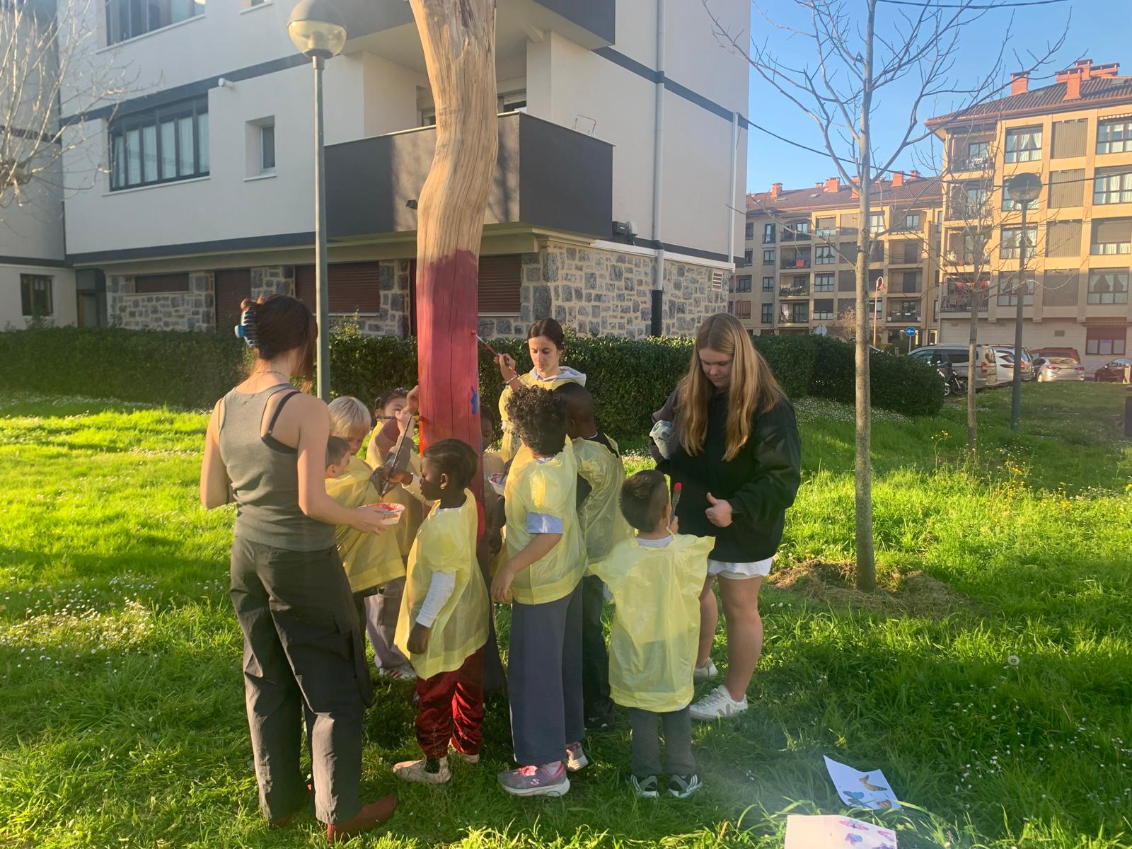 Parte hartu zutenen artean, Ludotxo ludotekako haurrak aritu ziren, begiraleen laguntzarekin, zuhaitza margotzen, eta, besteak beste, tximeletak bezalako irudiak marrazten.