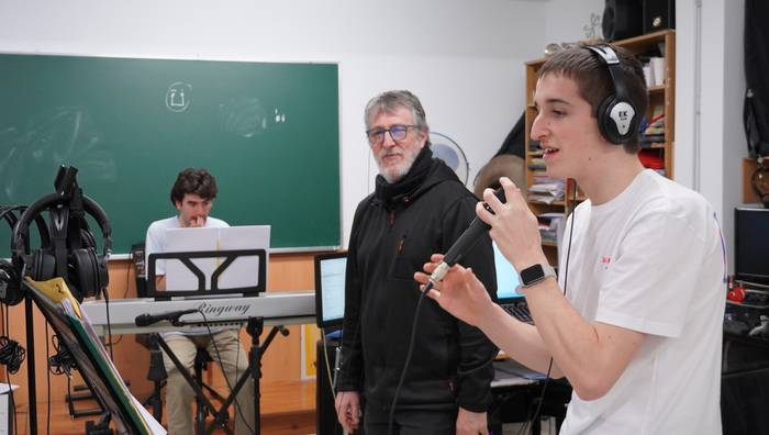 Otsaileko astelehen arratsalde bat da, otsailaren 23koa zehazki, baina ikasturteko beste edozein astelehen arratsalde izan daiteke. 19:30ak jotzeko minutu batzuen faltan, ilundu berri du Zarautzen, eta Lapurdi kaleko haur parkea, duela minutu batzuk leporaino beteta zegoena, guztiz hustu da. Errepidearen bestaldean dago Imanol Urbieta musika eskola, eta inguruan mugimendu handirik nabaritzen ez den arren, barruan argia ikus daiteke. Atea zeharkatuta, hutsik daude korridoreak, baina ez gelak. Eskaileretan gora, barreak sumatzen dira bigarren solairuko gela batean. Juan Pardo, Izei Lasa, Unax Esnaola, Mikel Agirrezabala, Markel Ugarte, Mateo Larraza eta Unai Benitez dira, baita Iñigo Isasti irakaslea ere; Jon Urien falta da gaurkoan, kale egin du.